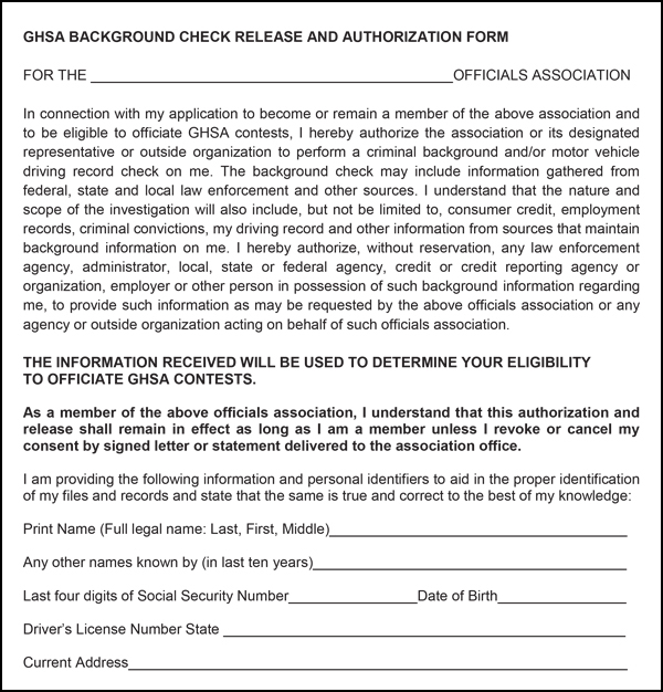 GHSA Background Check Form